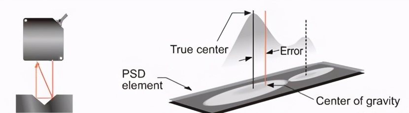 PSD方法:當(dāng)傳感器為整個(gè)光束點(diǎn)的光量分布測(cè)量重心作為位置信息時(shí),由于二次反射光的存在而發(fā)生誤差。
