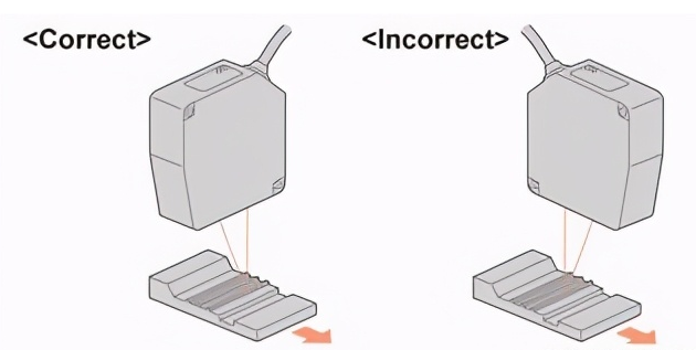 當(dāng)移動(dòng)物體的表面不平坦時(shí),如下圖所示安裝傳感器,以減少測(cè)量物體時(shí)臺(tái)階邊緣的影響。