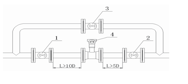 不允許直接在流量計測量管前后端安裝閥門、彎頭等極大改變流體流態的部件,如果需要在流量計前后管道上安裝閥門、彎頭等部件也應盡量保證前后直管段長度,直管段要求前10D,后5D,對于新完工的工藝管道,應先進行初步吹掃后再安裝流量計。