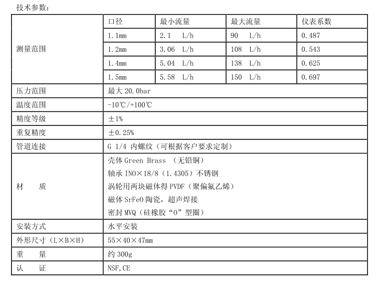 系列流量計用途十分廣泛: 可用于測量、 調節、 分配液體, 包括工業、 化學、 石油和商用咖啡機等。 當應用于食品衛生工業時, 其產品都通過美國國家食品安全部門(NSF) 的驗證。