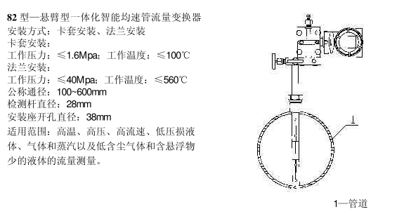 84 型高強度懸臂型一體化智能均速管流量變換器