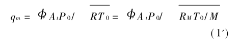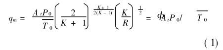 式(1)中,<稱為臨界流函數,K為等熵指數,R為氣體常數;P0、T0分別為噴嘴入口處氣體滯止壓力和滯止溫度;At為噴嘴喉部面積.有時,質量流量公式也表示成