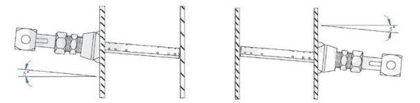 對于垂直管道,理論上可以在360度內(nèi)安裝。對于含有大量水分的濕氣體,推薦傳感器安裝時(shí)向上傾斜5度,對于含有大量氣體的液體,推薦傳感器安裝時(shí)向下傾斜5度(見上圖)。且傳感器應(yīng)該處于整個(gè)測量系統(tǒng)中的最高點(diǎn),若有特殊場合的安裝方式請與我們聯(lián)系。