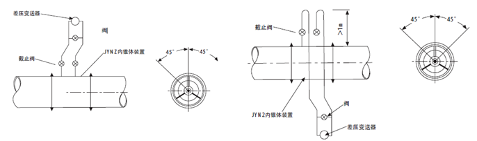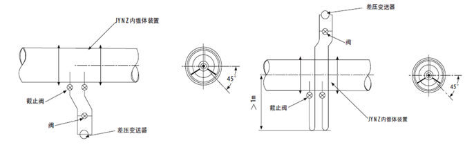 (3)在水平或傾斜的管道上,為了避免管道中冷凝液進入導壓管,導壓管應自內錐體裝置的水平中心線上半部引出。
