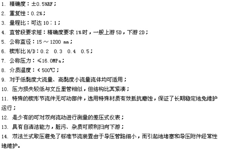 1 重復性好、 精確度高, 經標定的楔形流量計, 精度達 0.5 級。