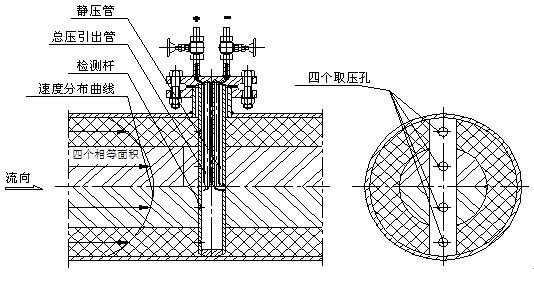 阿牛巴流量計由檢測桿、取壓口和導桿組成。阿牛巴的檢測管截面形狀分為圓形、菱形、橢圓形等多種結構。如圖所示。