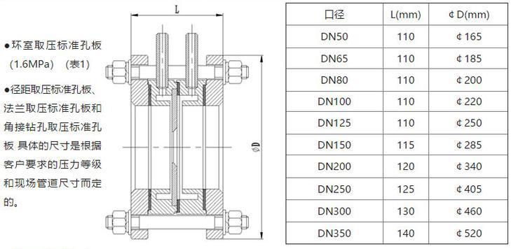③適用直徑比為0.22~0.75,雷諾數(shù)ReD道直徑DN50~1000mm,允許外推到5000mm。=d/D,d孔板開孔直徑;D&md實際內(nèi)徑